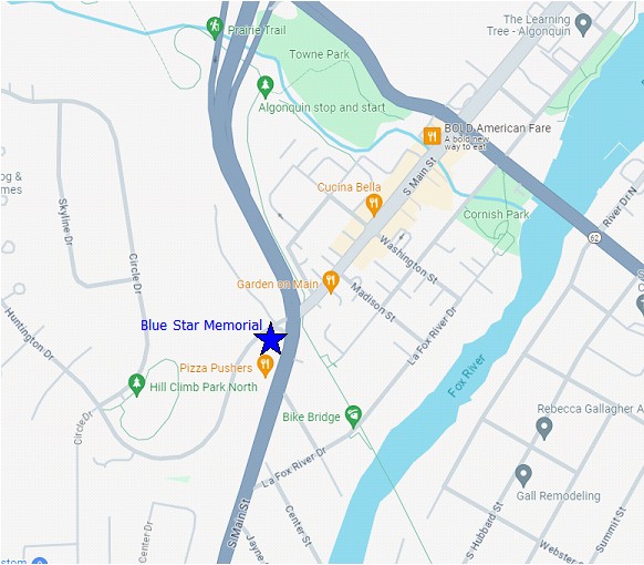 During the construction of the roundabout at the north side of Main Street, the Blue Star Memorial was removed and now has been relocated to the new site. The original dedication was on May 28, 2001.